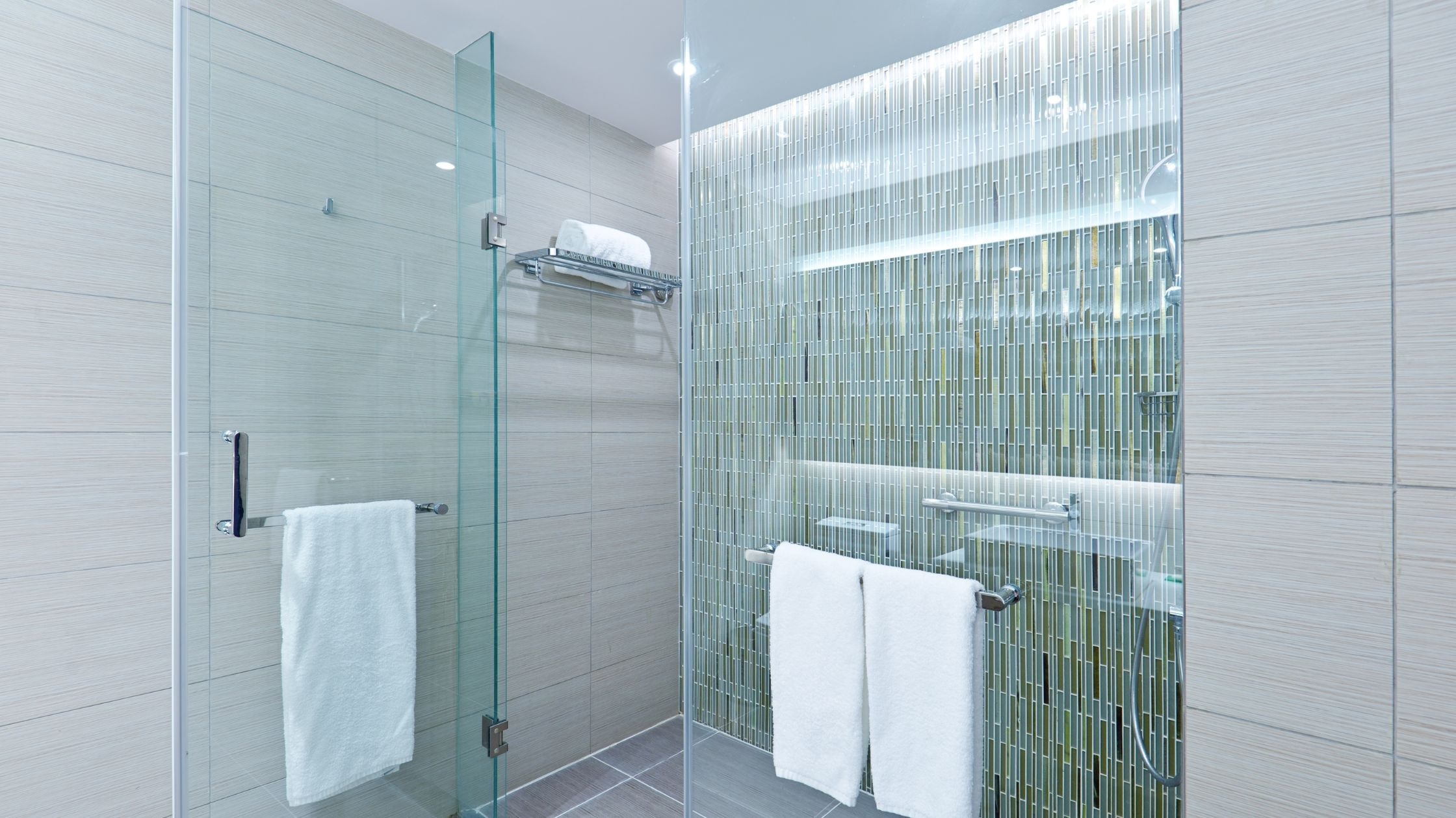 Big Blue’s Tip: Install LED lighting within recessed shower niches to create ambient lighting that enhances the luxurious feel of your walk in shower while providing practical illumination for stored items.